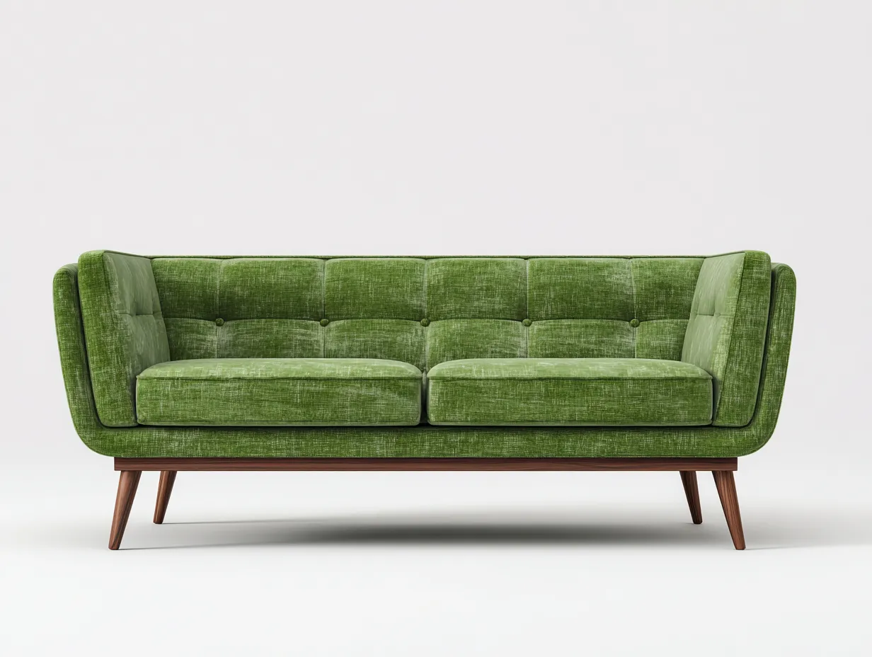 Divano 3 posti-tessuto-legno-232x94x80 cm-Verde-design moderno per soggiorno