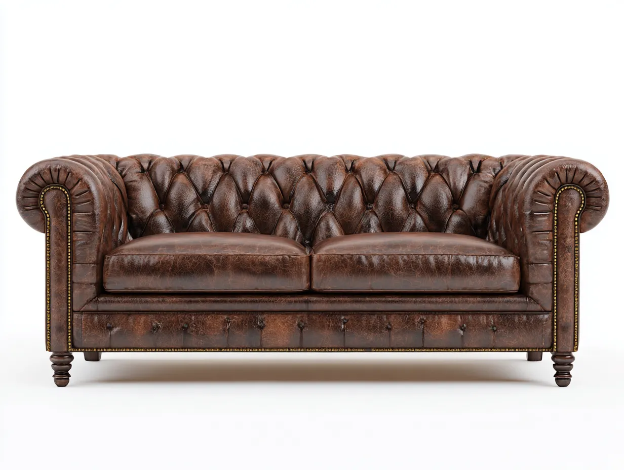 Divano 3 posti-pelle-legno-238x96x79 cm-Marrone stile classico per soggiorno