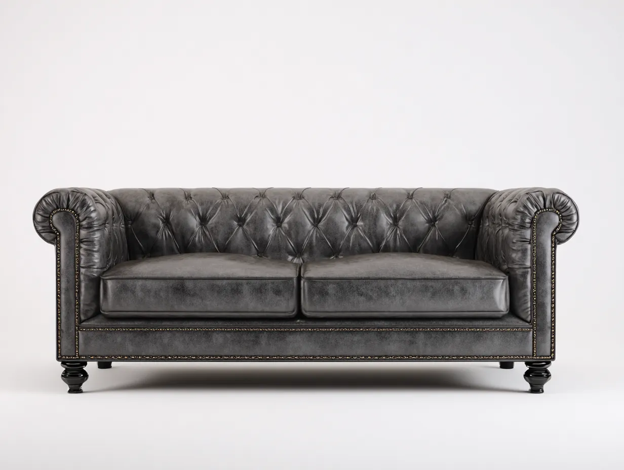 Divano 3 posti-pelle-235x95x78 cm-Grigio stile classico per soggiorno
