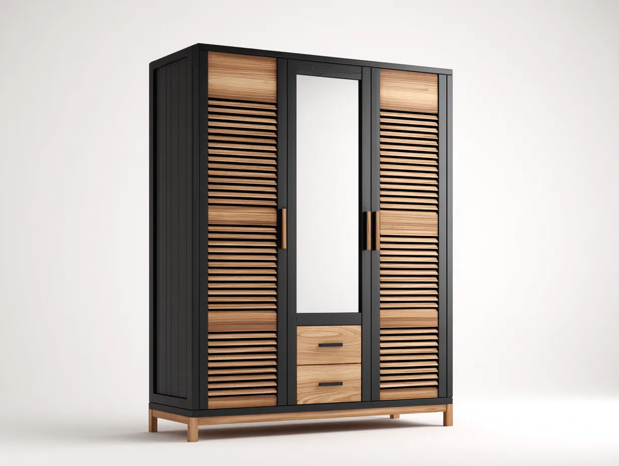 Armadio-legno massello-legno ingegnerizzato-118x56x188 cm-Nero-Legno Naturale-stile moderno