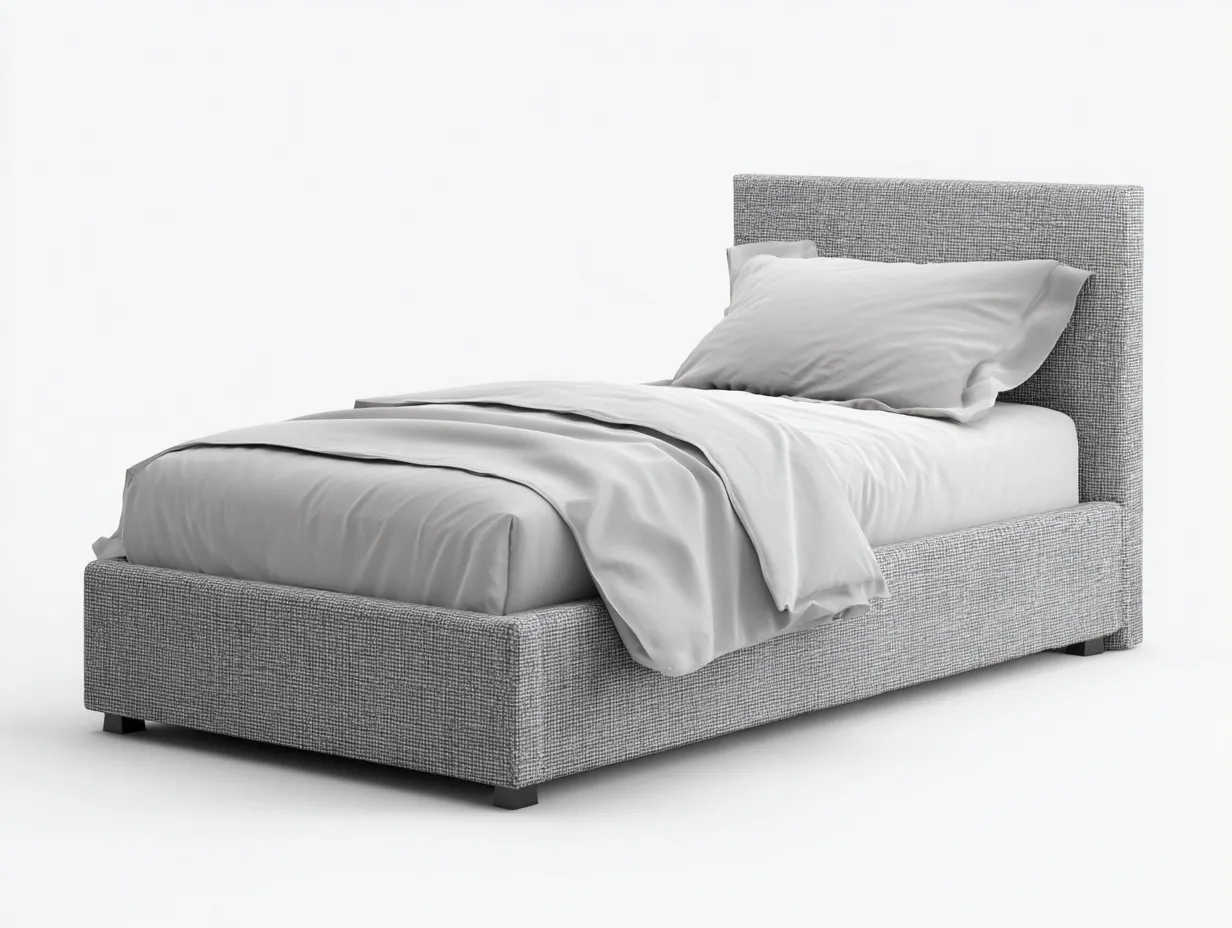 Letto singolo-tessuto-legno-201x97x105 cm-grigio chiaro-stile minimal