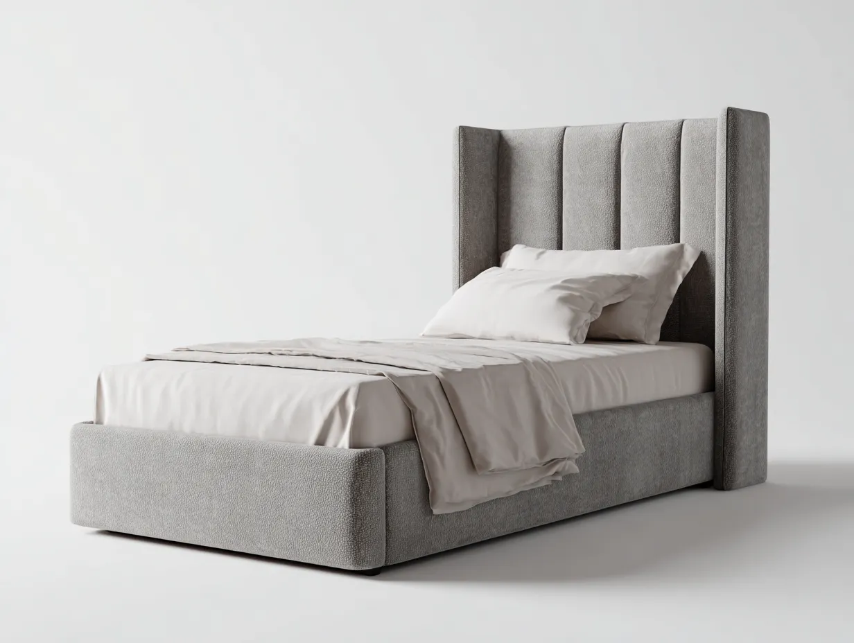 Letto singolo-tessuto-legno-202x98x118 cm-grigio chiaro-stile moderno